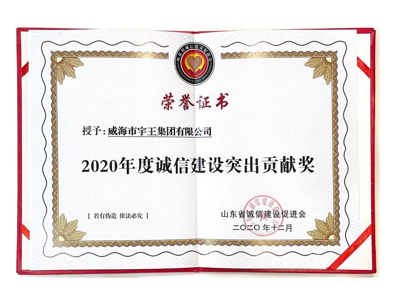 近日,山東省誠信建設促進會對誠信建設先進企業予以表彰,并頒發匾牌與證書。宇王集團榮獲“2020年度誠信建設突出貢獻獎”。