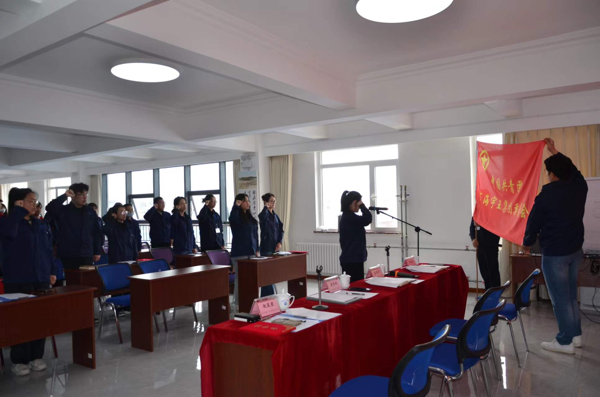全體團員及青年職工面向團旗莊嚴宣誓,堅決擁護中國共產黨的領導。