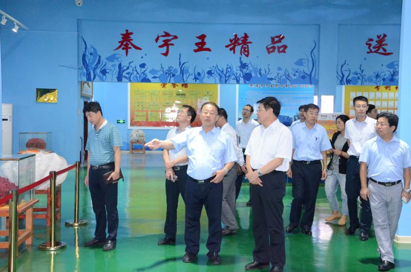 2017829日,威海市政府副市長(zhǎng)高書(shū)良及相關(guān)部門(mén)領(lǐng)導(dǎo)一行蒞臨威海市宇王集團(tuán)海洋生物科技產(chǎn)業(yè)園指導(dǎo)工作。宇王集團(tuán)董事長(zhǎng)苗強(qiáng)陪同。
