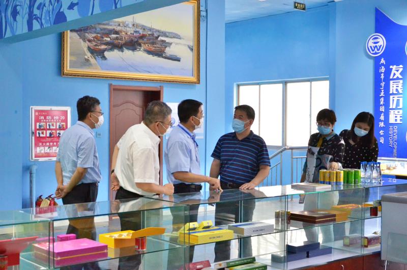 710日,山東省農林水產業工會主席張志剛、主任侯筱筠在市總工會黨組成員、經審會主任王慶文、市農林水產業工會主席劉春香、環翠區總工會副主席方召海等同志的陪同下,來到宇王集團海洋生物科技產業園區實地調研產業工會工作。