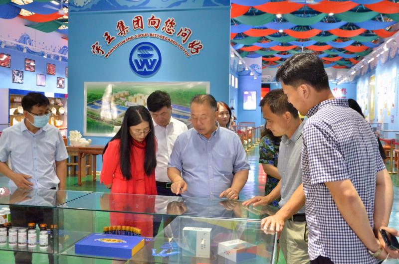 宇王集團董事長苗強帶領大家考察參觀了海洋生物蛋白生產車間和巖藻多糖生產車間,介紹了海洋生物制品前沿技術和未來發展方向。大家開闊了眼界,增加了對高科技海洋生物食品的認知,全面了解了宇王集團海洋生物科技產業和軍供產業發展情況。